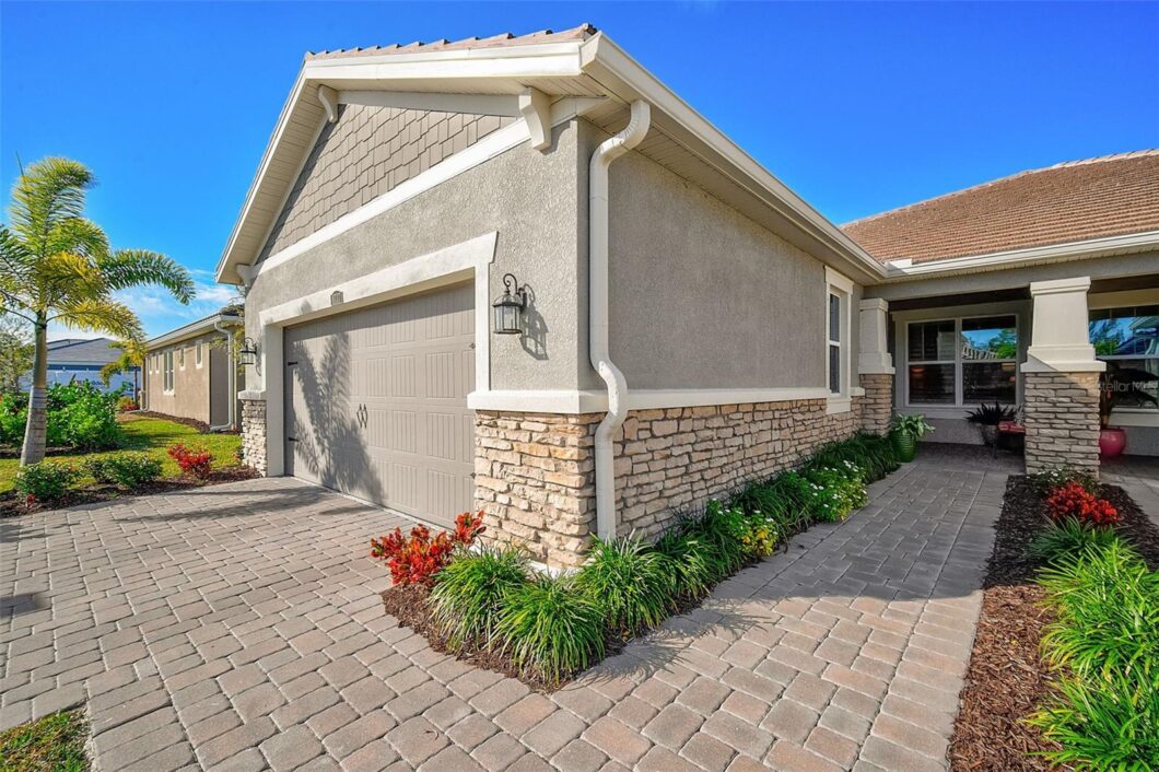 THIS SUNRISE PRESERVE VILLA awaits you with WONDERFUL WATER VIEWS! IT’S LIKE NEW & MOVE-IN READY! Built in 2021 by Mattamy Homes, the popular Bayport model has 2 BEDROOMS, 2 BATHROOMS, +DEN and a 2 CAR GARAGE with an OPEN CONCEPT FLOOR PLAN! The southern facing windows in the main living space make THIS PARTICULAR VILLA ESPECIALLY LIGHT, BRIGHT & AIRY as well as the 8’ doors and 9’ceilings. The kitchen with a walk-in pantry features an island, beautiful quartz countertops, timeless white Shaker-style 42” cabinets with crown molding, custom pullout drawers in the lower cabinets and white subway tile backsplash. The stainless appliances include a gas range, dishwasher, microwave and French door counter-depth refrigerator. The split floor plan offers you and your guests plenty of privacy with the 2nd bedroom and guest bathroom at the front of the house while the primary suite is at the back of the home. Three large sliding glass doors take you from the living room out to the screened lanai with brick pavers. In addition to the builder upgrades, sellers have made numerous improvements to this villa including an expanded 10’x15’ screened lanai with “picture view” panels for unobstructed views of the water teeming with wildlife! Be sure to ask for a complete list of improvements. The ensuite master bathroom has a dual sink vanity, a spacious walk-in shower with built-in bench seats, a linen closet and a very generous primary closet. Sunrise Preserve is an amenity-rich, pet-friendly community offering resort-style living at its best! You won’t run out of things to do – whether it be playing tennis, pickleball, bocce ball or enjoying the state-of-the-art clubhouse featuring a gathering room, exercise room, and an amazing resort style pool area. Sunrise Preserve’s convenient location provides easy access to the beautiful white sandy beaches of the Gulf of Mexico, shopping, dining, golfing, the Legacy Trail and all that Sarasota has to offer! Sellers will consider selling some of the furnishings under a separate bill of sale. SCHEDULE A SHOWING TODAY & MAKE AN OFFER!!!